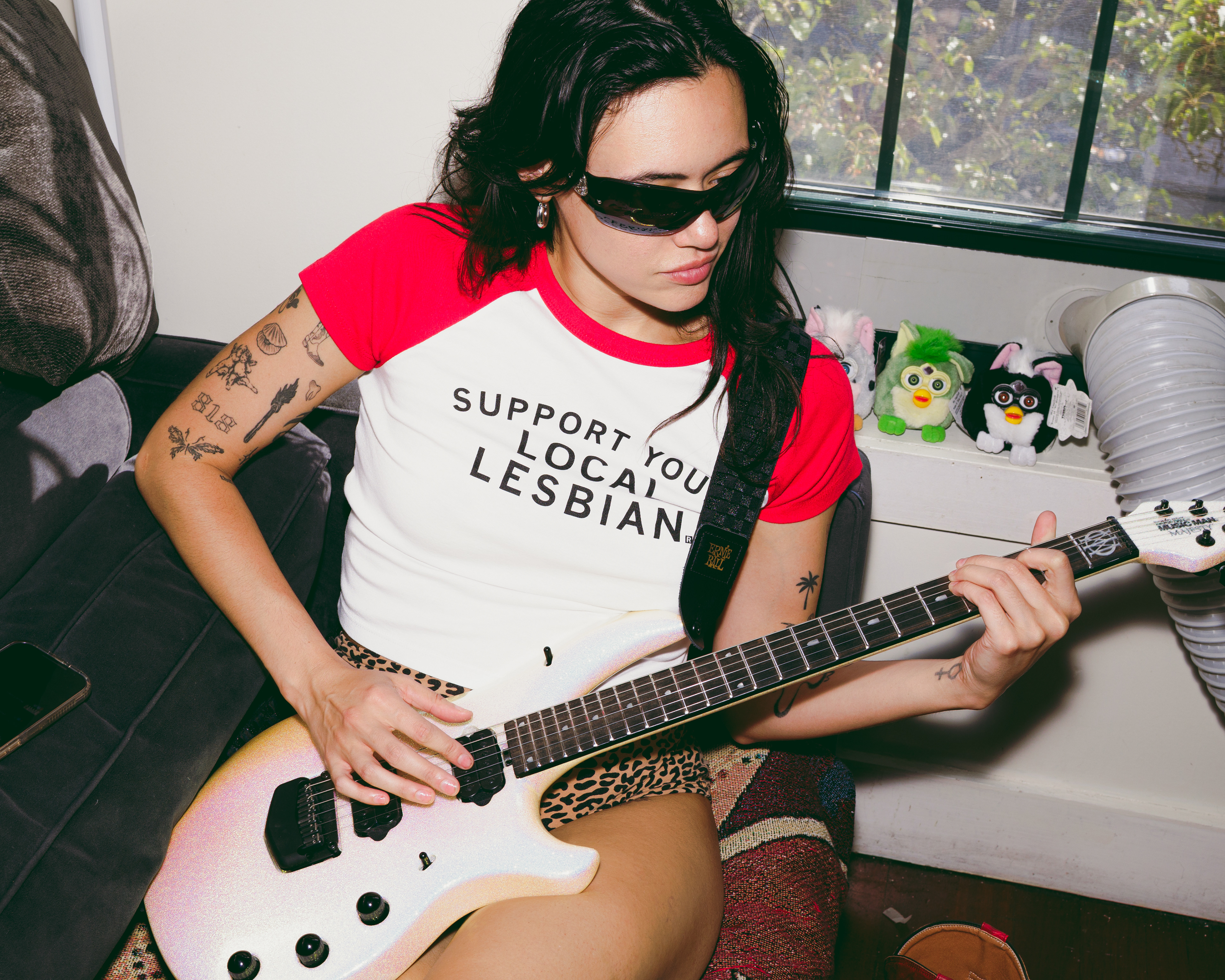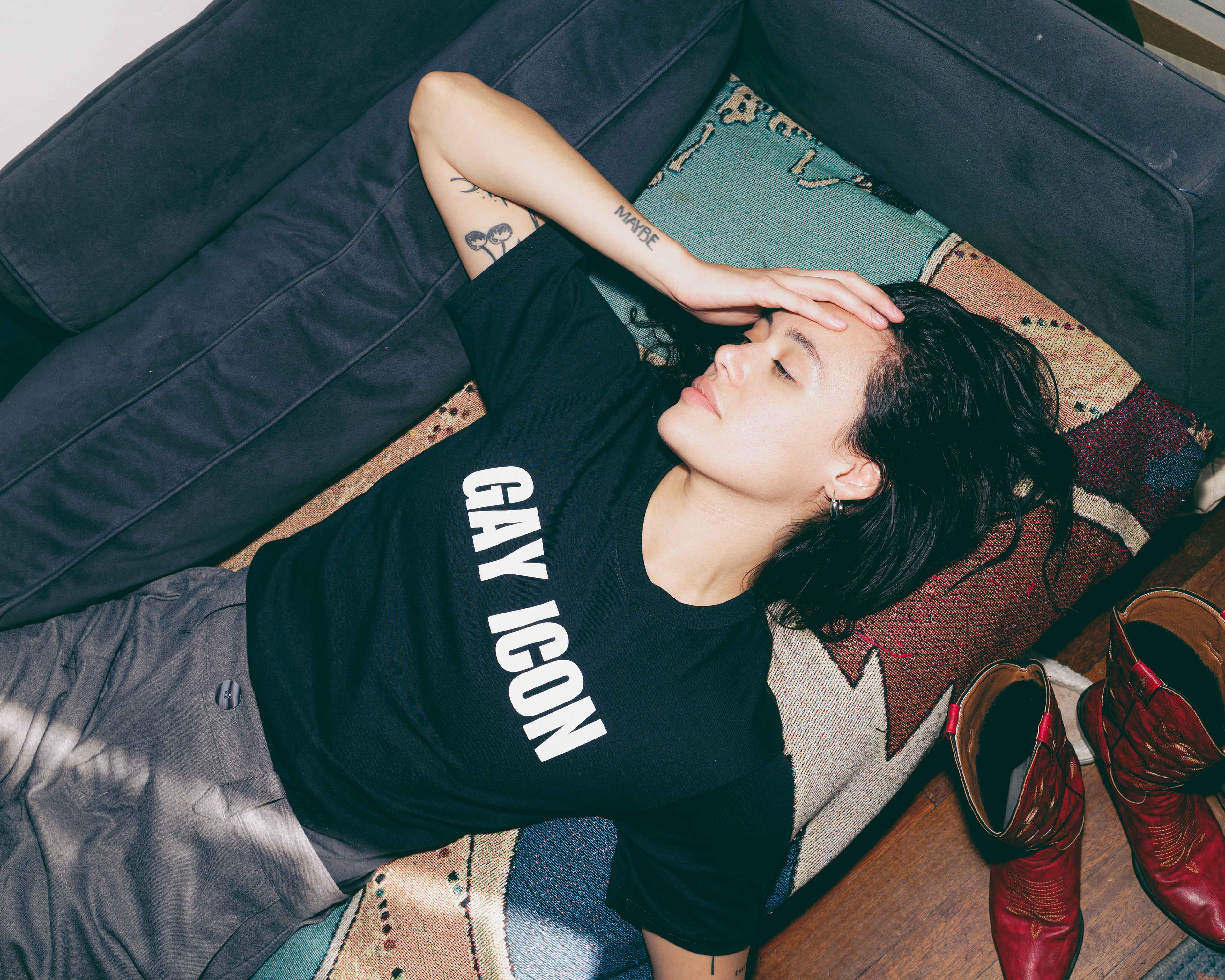 I wouldn't see rivkah again until my impulsive episode bought southwest airline tickets to nyc where I am typing this shit from. it was literally yesterday, 10/2/2025, that rivkah and I took these photos. being welcomed into their home, immediately met with the biggest collection of the gayest t-shirts I've ever seen. and not hilary duff psa gay—I mean shirts with literal gay messaging on them. super gay. I loved it.